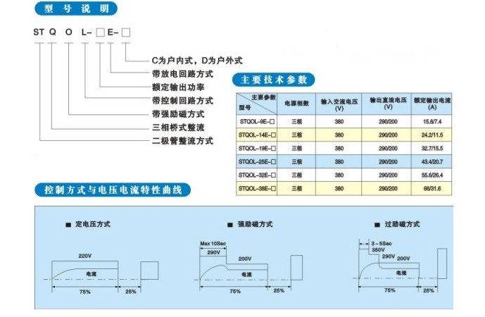 本系列產(chǎn)品當(dāng)容量小于或等于19千瓦時,整流變壓器外附;當(dāng)容量大于或等于25千瓦時,分為整流控制設(shè)備和強(qiáng)勵磁控制設(shè)備,整流變壓器內(nèi)附于強(qiáng)勵磁控制柜內(nèi)。